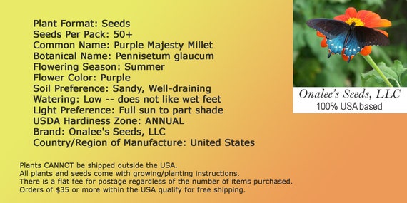 50 Purple Majesty Millet Black Ornamental Grass Birds Full Etsy De